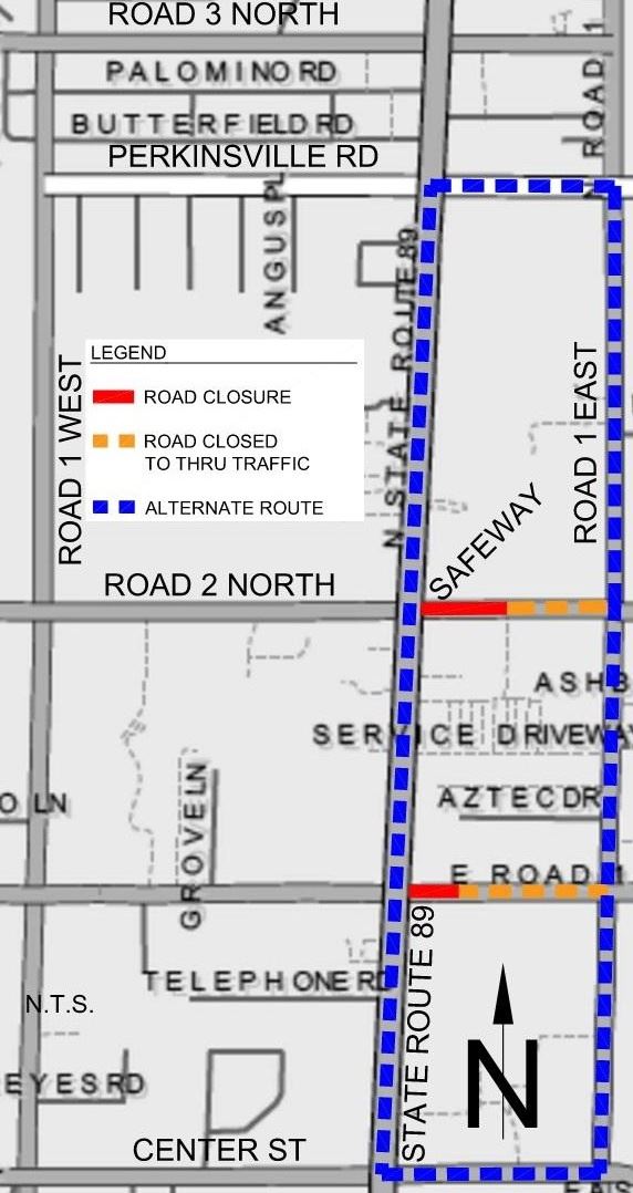 East Road 2 North between State Route 89 and North Road 1 East will be closed at night for road work on Tuesday, July 20th through Friday, July 23rd. The road closure will occur only at night between the hours of 8:30 p.m. and 5:00 a.m. and reopened during the day. Lane restrictions and reduced speeds will continue during the day throughout the duration of the project.