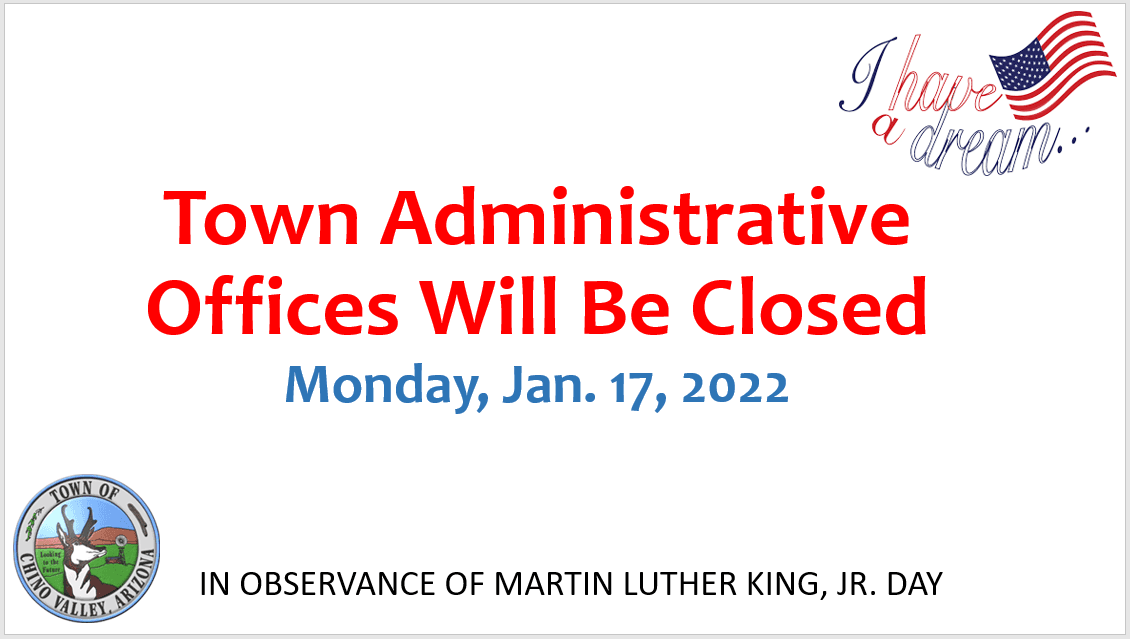Town of Chino Valley Administrative Offices will be closed for Martin Luther King Jr Holiday.