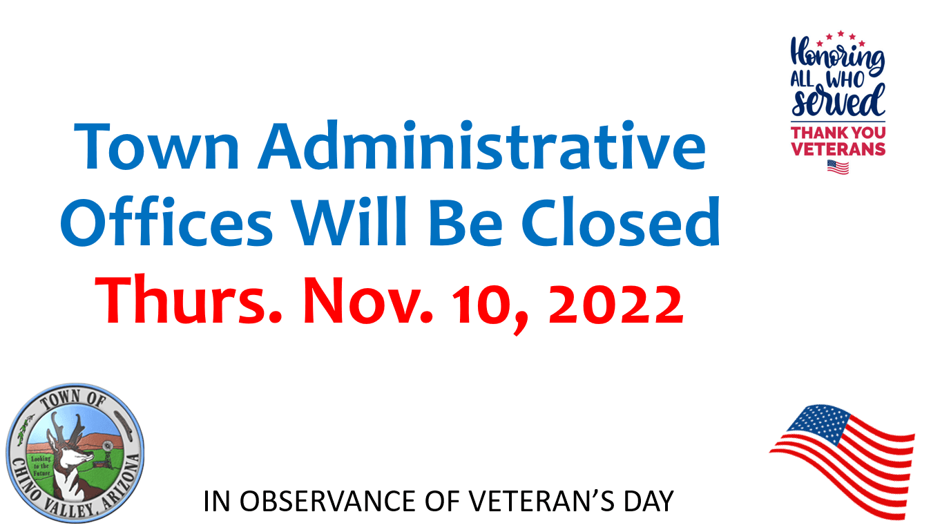 Town of Chino Valley Administrative Offices will be closed in observance of Veteran's Day.
