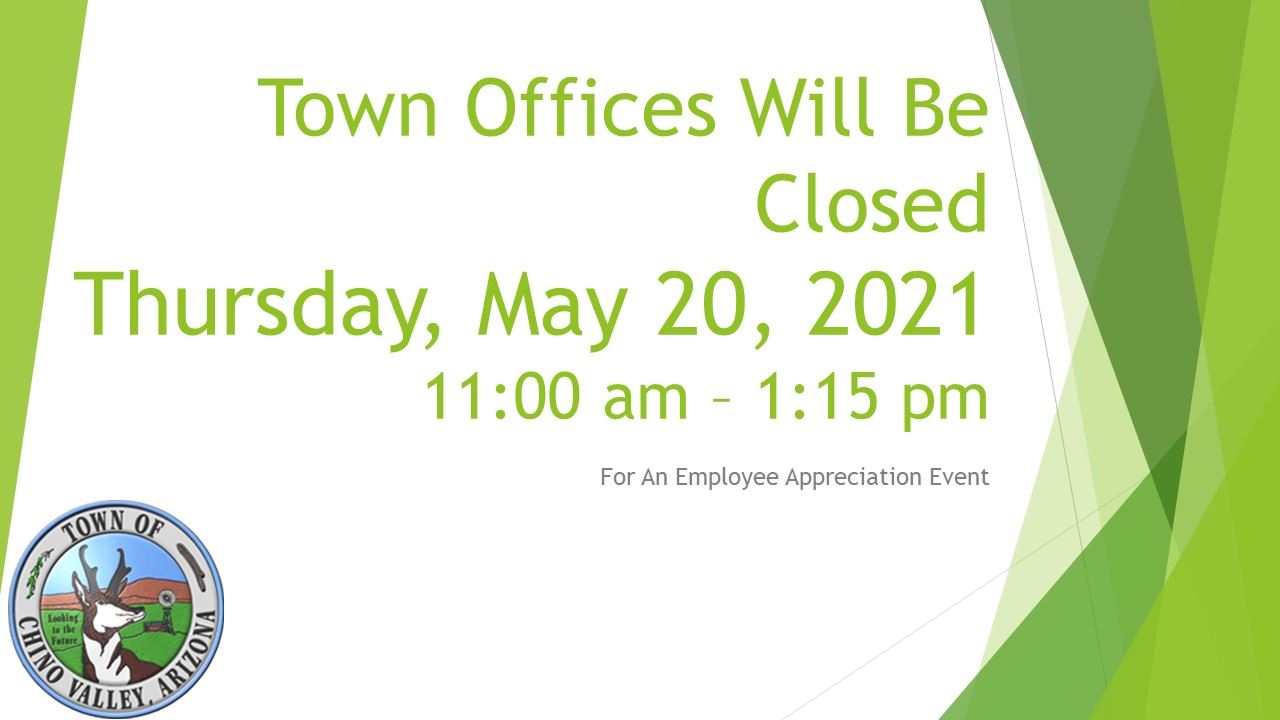 Town of Chino Valley offices will be closed a few hours today, May 20.