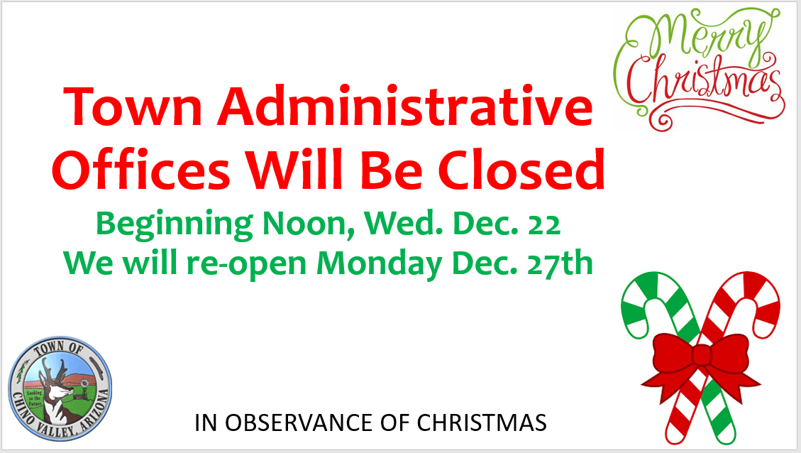 Town of Chino Valley Administrative Offices will be closed for Christmas Holiday.