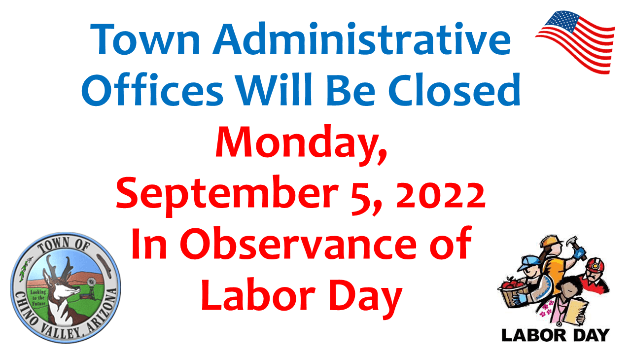 Town of Chino Valley Administrative Offices will be closed in observance of Labor Day.